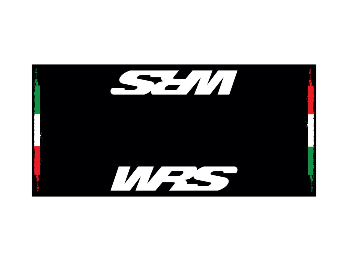 Original WRS carpet, rectangular in size, black with white WRS logo and Italian flag on the sides.
